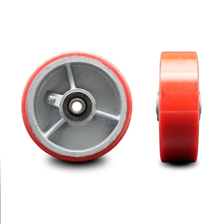 Listing is for one (1) Service Caster 5" diameter by 2" tread width Red Polyurethane tread on Silver Semi Steel Cast Iron wheel with a roller bearing and 1/2" bore. Supports 1000 pounds (lbs) per wheel.When searching for a reliable and durable solution for replacement wheels, consider Service Caster’s polyurethane tread on cast iron core wheels. With a roller bearing with a ½” bore, this wheel is ideal for material handling, carts, equipment, and shop projects. The non-marking, non-marring polyurethane tread performs especially well on hard surfaces such as concrete, tile, and wood, while the metal core wheel stands up to heavier loads with a stable and secure roll. Polyurethane tread with a cast iron core is ideal for a wide range of applications, such as dollies, platform trucks, warehouse carts and freight terminals. Or ensure a smooth and secure ride for food service carts, hotel housekeeping carts, and industrial and commercial equipment. Even drywall carts, welding carts, and wall panel carts will be ready to roll. Service Caster is unsurpassed in quality, reliability, and excellent customer service. Count on us to move you forward.
