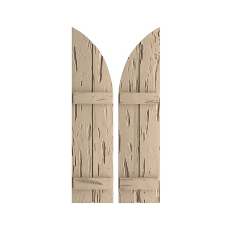 Ekena Millwork SHUBJQ11X52PCPR (41" Low Side) Timberthane Two Joined Board-n-Batten w/Quarter Round Arch Top Faux Wood Shutters (Per Pair), Primed Tan, 11" W x 52" H