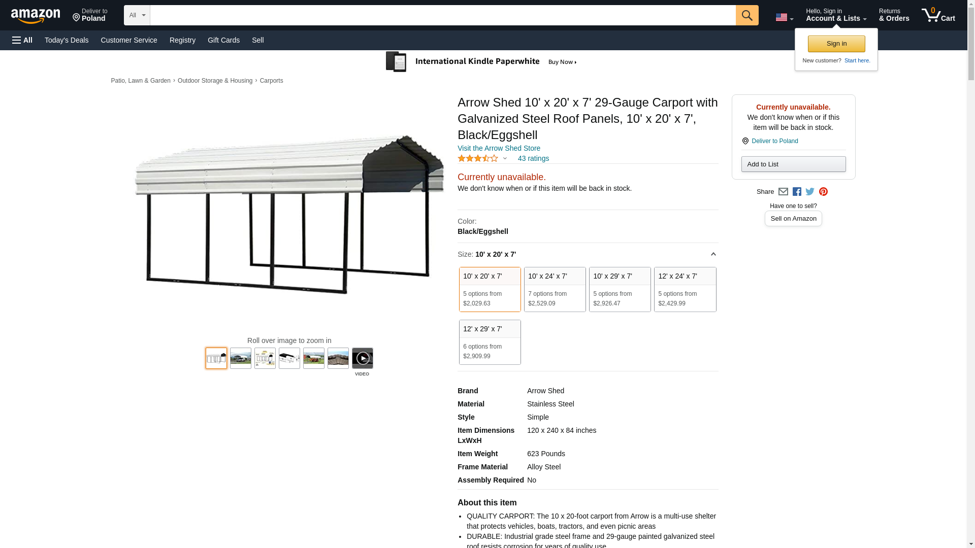Arrow Steel Carport - 10 ft. x 20 ft. x 7 ft. - Eggshell/Black | Omni Outdoor Living