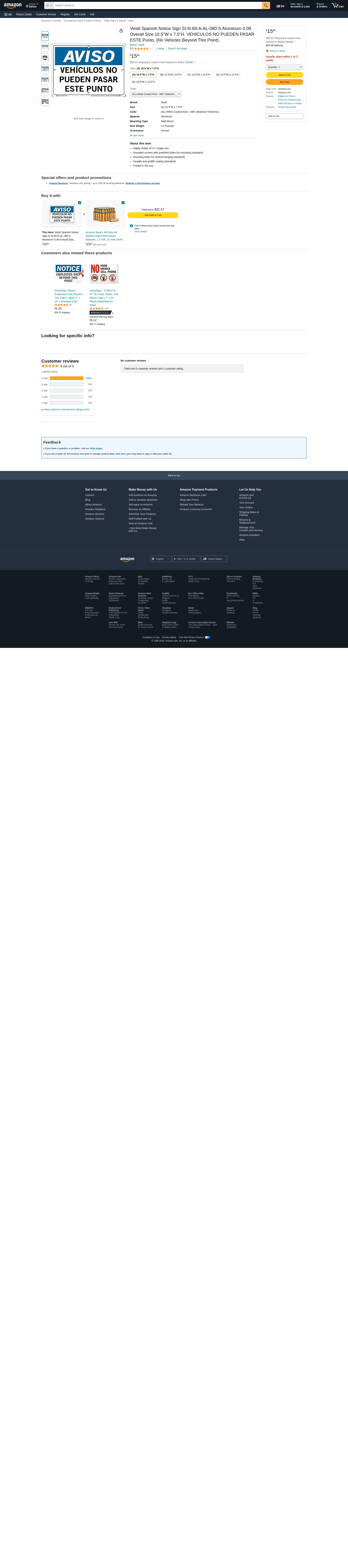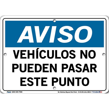 Vestil Spanish Notice Sign SI-N-69-A-AL-080-S Aluminum 0.08 Overall Size 10.5"W x 7.5"H. VEHÍCULOS NO PUEDEN PASAR ESTE Punto, (No Vehicles Beyond This Point).