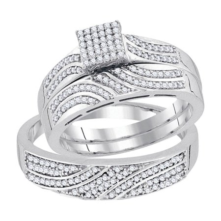 Mens Ladies 10k White Gold Micro Pave Diamond Trio Engagement Ring Set 0.40CT