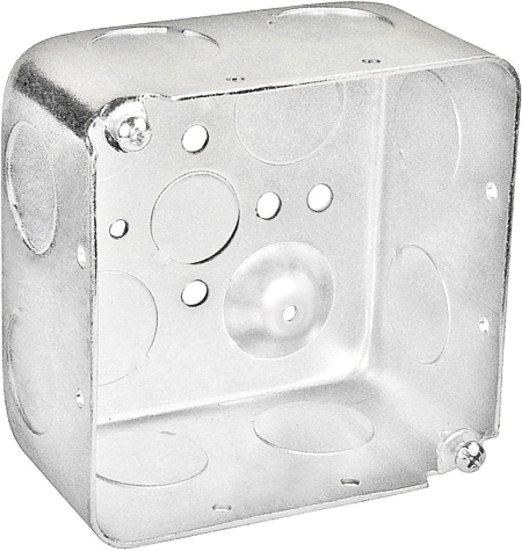 2 Pcs, 4" Square Drawn Box, 2-1/8 In. Deep, (8) 3/4 In. Side Knockouts, .0625 Galvanized Steel for Lighting Fixtures, Switches, Receptacles Or Outlet Devices