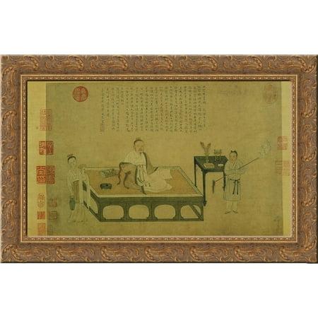 Ni Zan's portrait 24x18 Gold Ornate Wood Framed Canvas Art by Qiu Ying