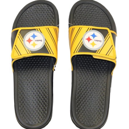 These beautiful mens Legacy Shower Slide flip flops feature molded EVA bottoms with peddle patterned concave footbeds. Each shower slide is designed with your favorite team's colors and logo, as well as a Legacyd velcro top. These slippers are perfect for the pool beach shower or just wearing around the house. These slippers make the perfect /gift! The mens Legacy Shower Slide flip flop size scale is as follows: Mens Small (7-8), Mens Medium (9-10), Mens Large (11-12), Mens X-Large (13-14), Officially licensed.