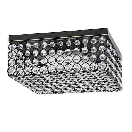 Elegant Designs 12 Inch Elipse Crystal 2 Light Square Ceiling Flush Mount, Restoration Bronze