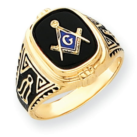 <ul> <li>14k Men's Masonic Ring</li> <li>14k Yellow Gold</li> <li>Width: 3 to 15mm; Approximate Weight: 8.85grams</li> <li>Size: 10</li> <li>Gift Box Included.</li> </ul>