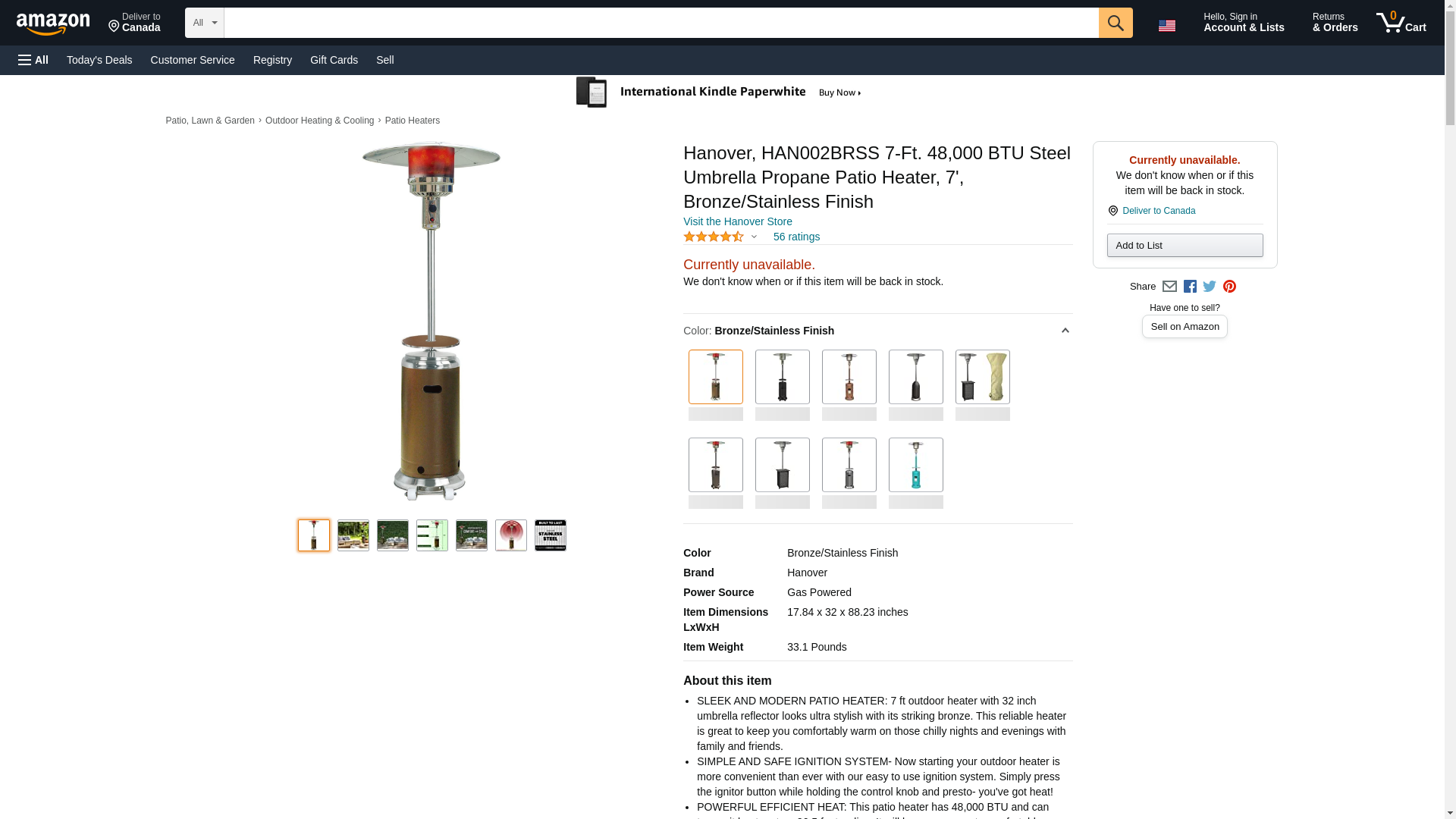 - Liquid propane gas patio heater (tank not included)