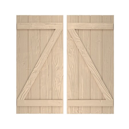 Ekena Millwork SHUBJZ Faux Wood Shutters (Per Pair) Rustic Joined n-Batten w/Z-Board, 22"W x 64"H, Sandblasted