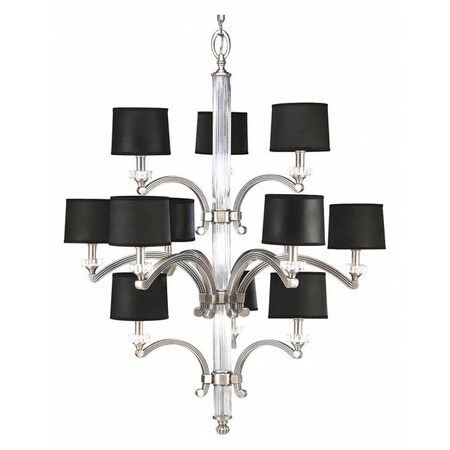 Progress Lighting P4502-101 12-Light 3-Tier Chandelier Combining Clear Crystal Accents with Both Black and White Shades, Classic Silver