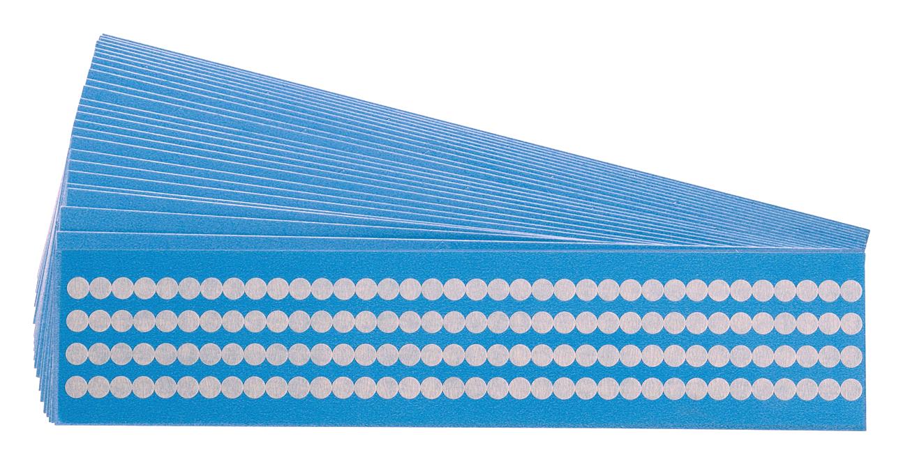<p>These circular, creped masking tape dots are designed for the quick application and clean removal necessary for efficient production line applications.</p><p><strong>Features:</strong></p><ul><li>Mounted on Blue Streak dispenser cards for easy handling and quick application</li><li>Matte tan finish with a removable rubber based pressure sensitive adhesive</li><li>Good conformability, good resistance to heat and moisture and removes cleanly from most surfaces without adhesive residue</li></ul>
