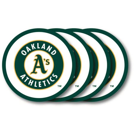 Oakland Athletics Coaster Set - 4 PackPerfect for protecting your furniture, these heavy-duty vinyl coasters are sold in sets of four. Beautifully decorated with team logos and colors, these coasters feature a non-slip surface perfect for setting down your drinks.. Made By Duck House