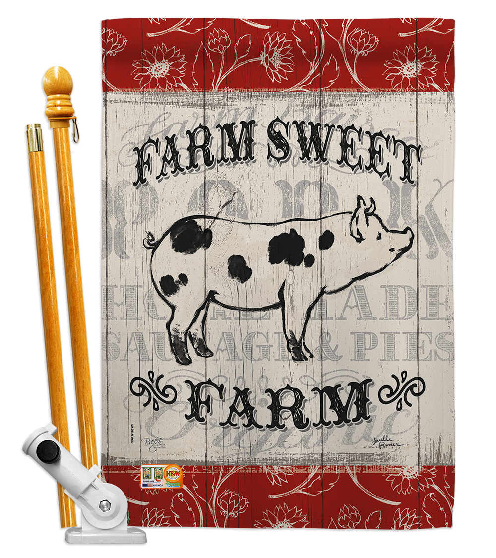 Breeze Decor HS110119-BO Sweet Pig Nature Farm Animals Decorative Vertical House Flag Set, 28"x 40" w/Flagpole, Multi-Color