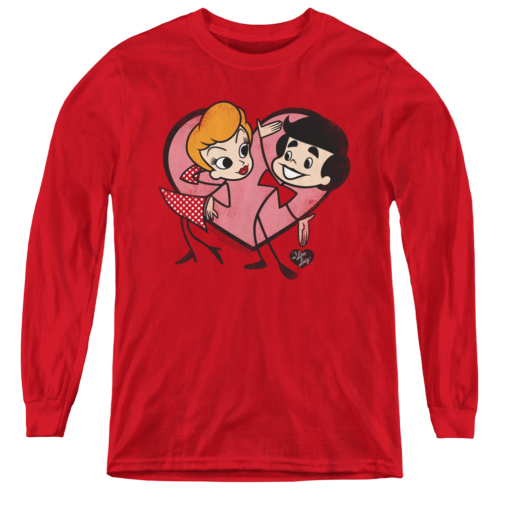 Trevco LB304-YL-3 I Love Lucy & Cartoon Love-Youth Long Sleeve Tee, Red - Large