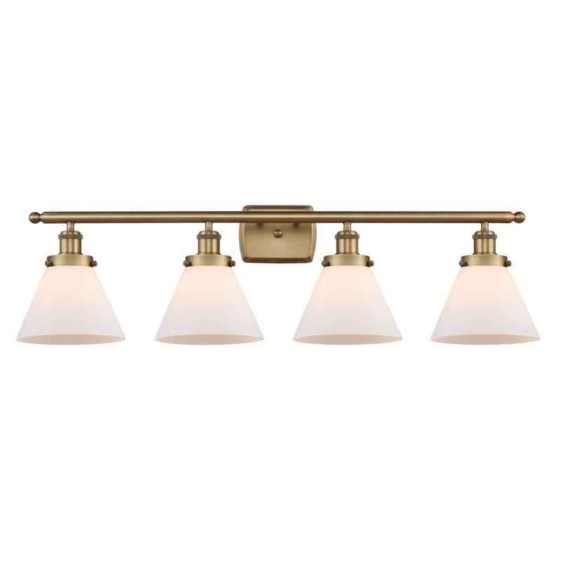 INNOVATIONS LIGHTING 916-4W-BB-G41-LED BALLSTON LARGE CONE 4 LIGHT 36 INCH MATTE WHITE GLASS VANITY LIGHT, BRUSHED...