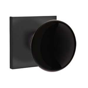 Porcelain Door Hardware Collection - Double Dummy Ebony Knob With Modern Square Rosette in Flat Black by Emtek Hardware - 5050EB.FULL.US19 | MyKnobs