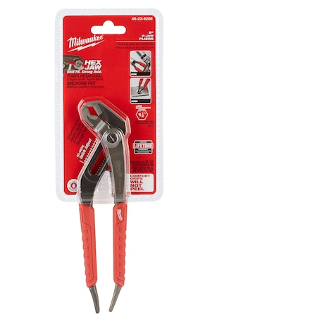 Milwaukee 48-22-6208 8 Inch V-Jaw Hex Pliers w/ Reaming Head and 16-Position All-Metal Quick Adjust Mechanism
