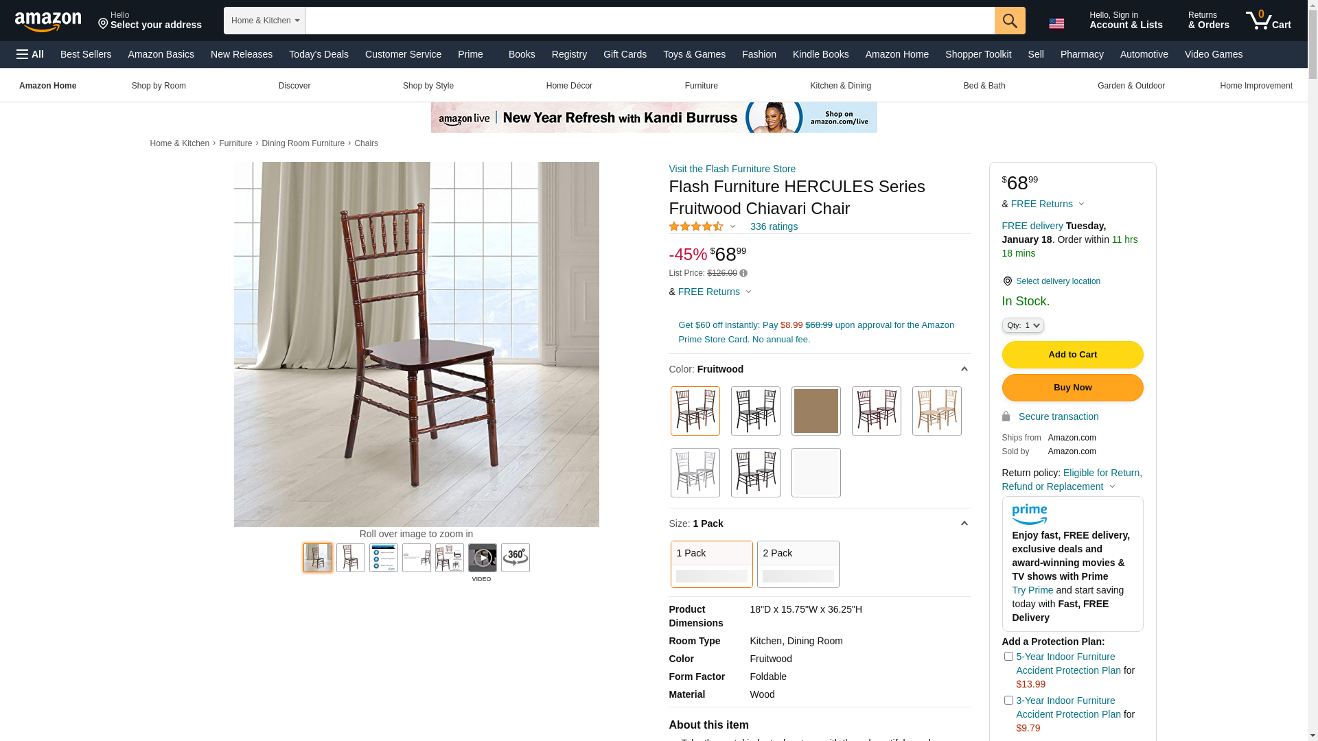 Flash Furniture HERCULES Series Fruitwood Chiavari Chair, 18"D x 15.75"W x 36.25"H, Set of 1