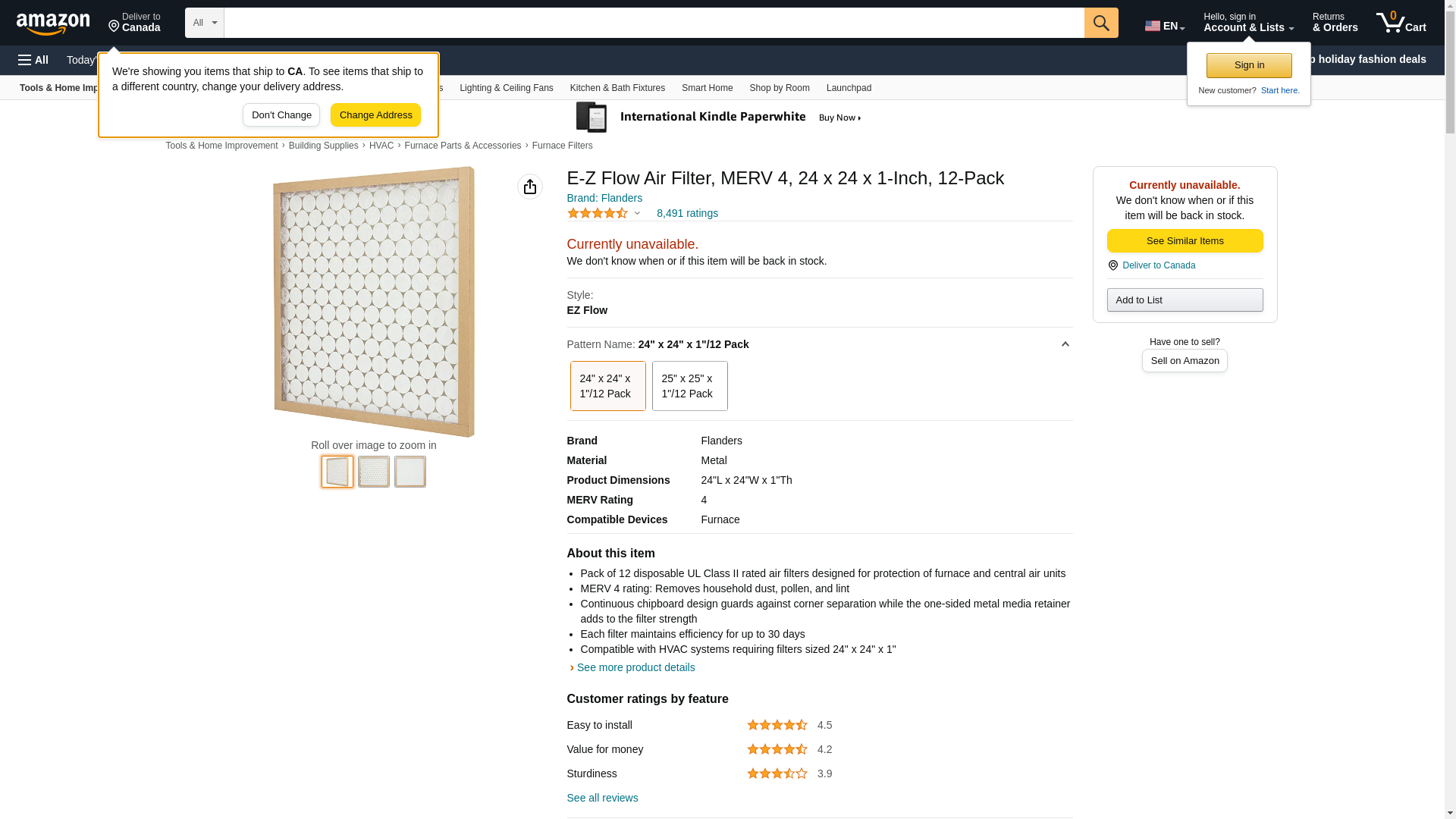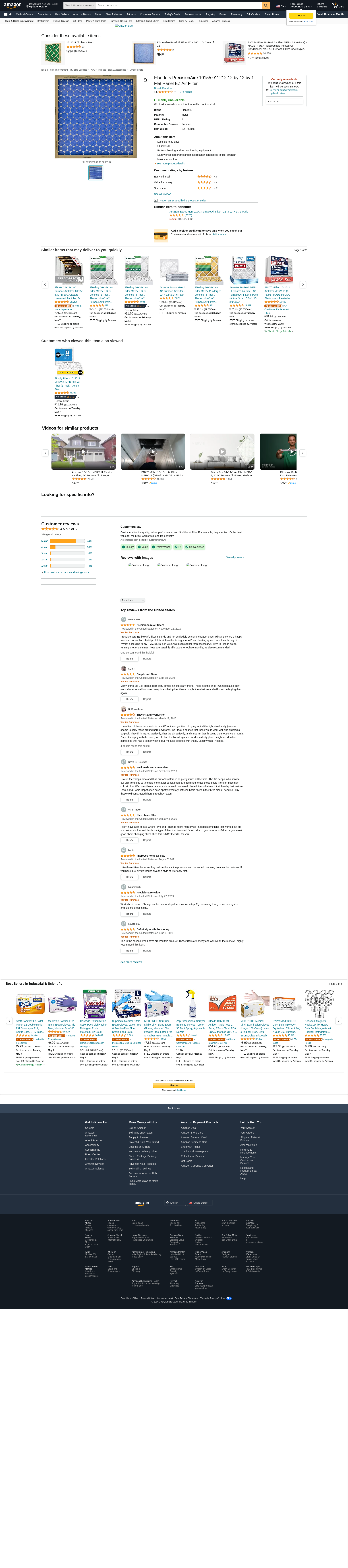 Flanders PrecisionAire 10155.011212 12 by 12 by 1 Flat Panel EZ Air Filter