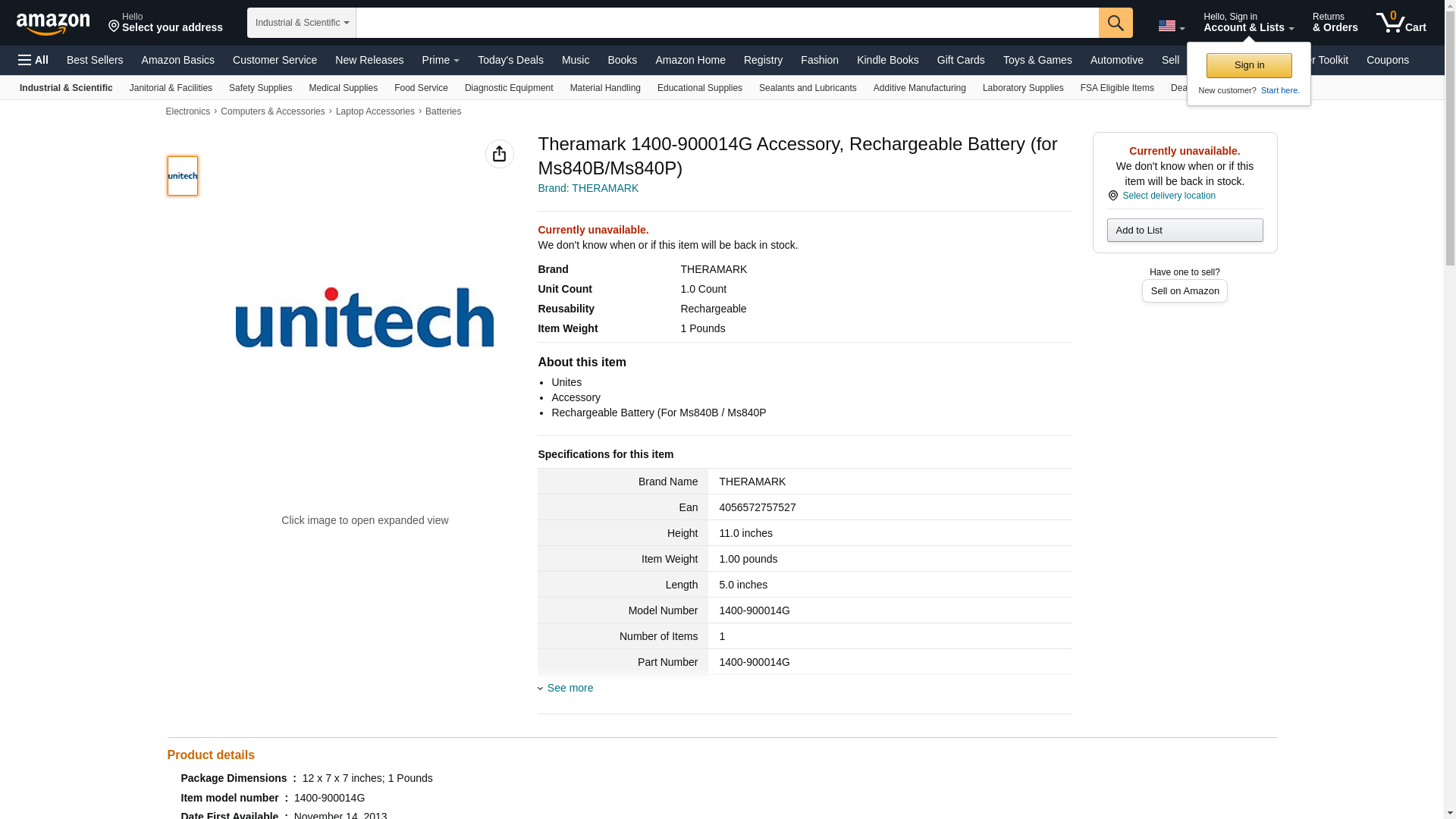 Theramark 1400-900014G Accessory, Rechargeable Battery (for Ms840B/Ms840P)