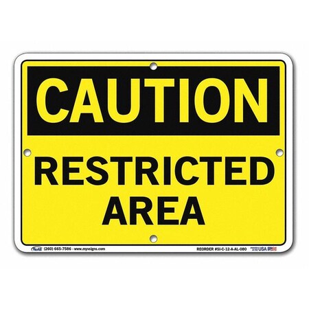 Vestil SI-C-12-A-AL-080 RESTRICTED AREA Caution Sign, Aluminum, 0.080" Overall Size, 10.5" W x 7.5" H