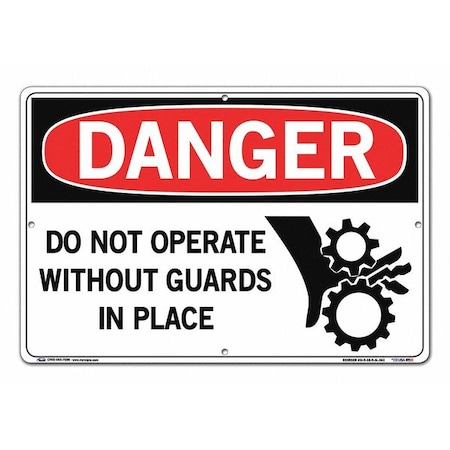 Vestil SI-D-28-D-AL-063 DO NOT OPERATE WITHOUT GUARDS IN PLACE Danger Sign, Aluminum, 0.063" Overall Size, 18.5" W x 12.5" H