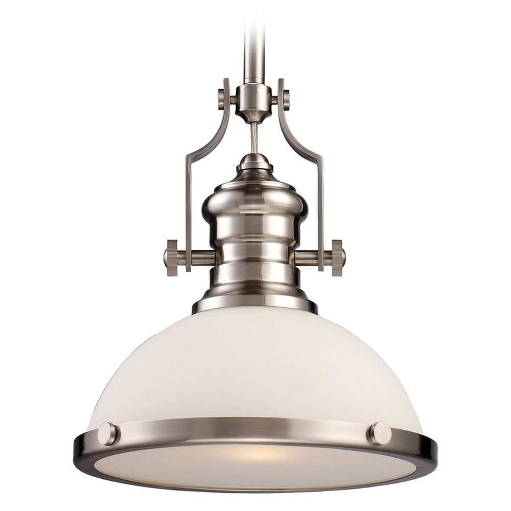 ELK Lighting Chadwick 1 Light LED Pendant in Satin Nickel with White Glass (66123-1-LED)