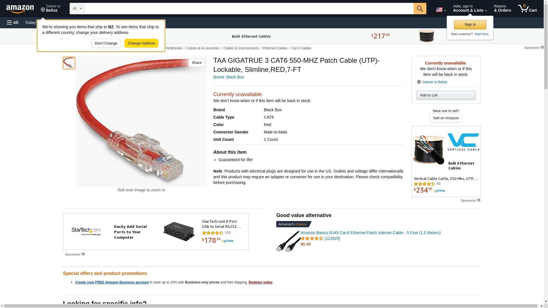 - Black Box Gigatrue 3 Cat.6 Utp Patch Network Cable - Category 6 For Patch Panel, Network Device - Patch Cable - 7 Ft - 1 X Rj-45 Male Network - 1 X Rj-45 Male Network - Red