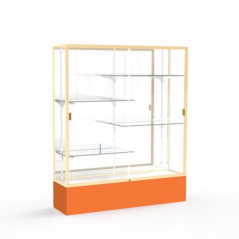 Spirit 60"W x 72"H x 16"D Floor Case, Mirror Back, Champagne Gold Finish, Orange Base