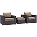 Modway Convene Wicker Rattan 3-Piece Outdoor Patio Furniture Set in Espresso Mocha