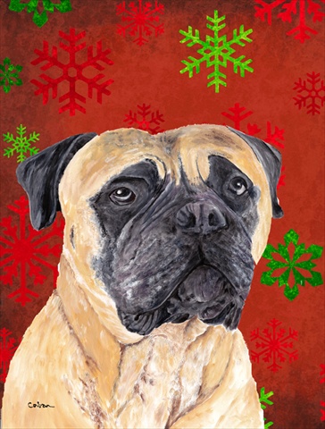 Carolines Treasures SC9425CHF 28 x 40 in. Mastiff Red and Green Snowflakes Holiday Christmas House Size Canvas Flag