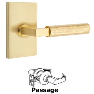 Select Levers Collection - Passage Hammered Lever with L-Square Stem and Concealed Screws Modern Rectangular Rose in Satin Brass by Emtek - C5112.LS.HA.US4-238-LH-2