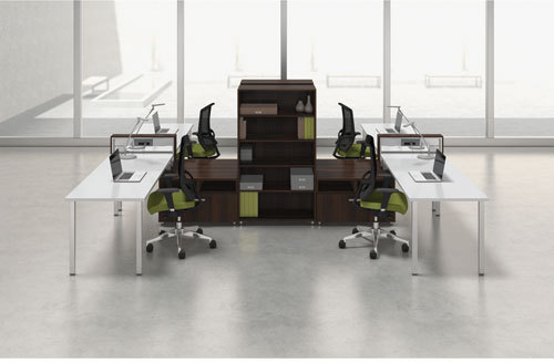 Mayline? e5 Series Two-Person Workstation, 123-1/2w x 73d x 29-1/2h, White/Walnut