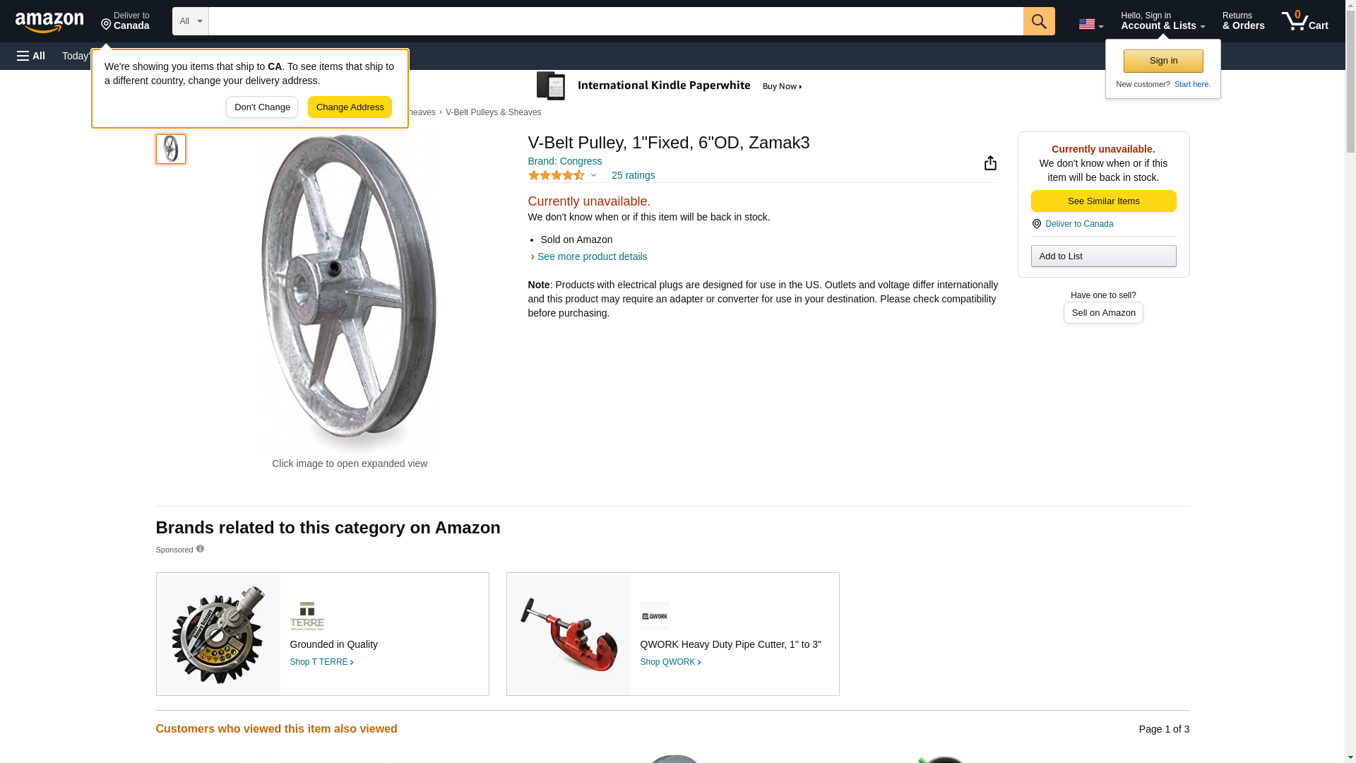 V-Belt Pulley, 1"Fixed, 6"Od, Zamak3