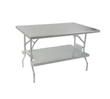 Lok-N-Fold™ Stainless Work Table has a 400 series, 18 gauge stainless steel top. Heavy gauge painted steel folding legs with locking dimples. Available with open base or with removable undershelf in galvanized or stainless steel. 350 lb. capacity. 305⁄8" working height. 72"Wx30"D. 75 lbs.