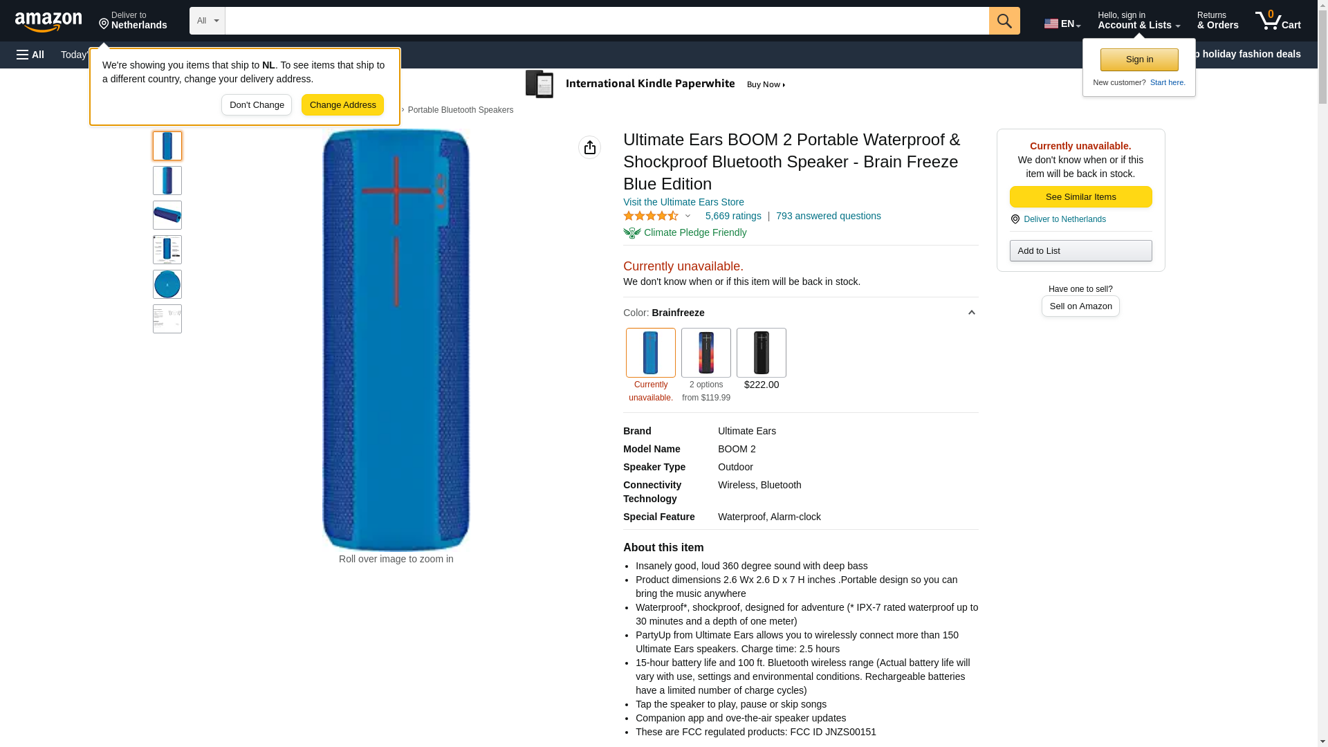 Ultimate Ears Boom 2 Portable Waterproof & Shockproof Bluetooth Speaker - Brain Freeze Blue Edition