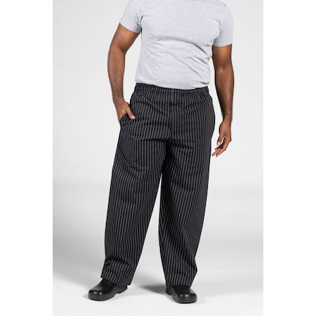 Uncommon Threads 4003-3303 Yarn Dyed Baggy Chef Pant in Black and White Pinstripe - Medium