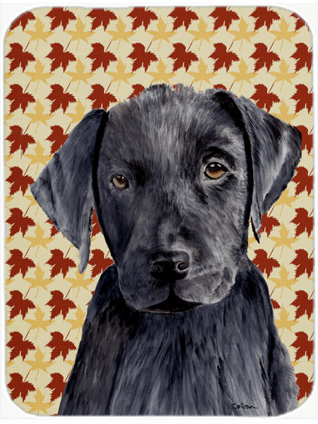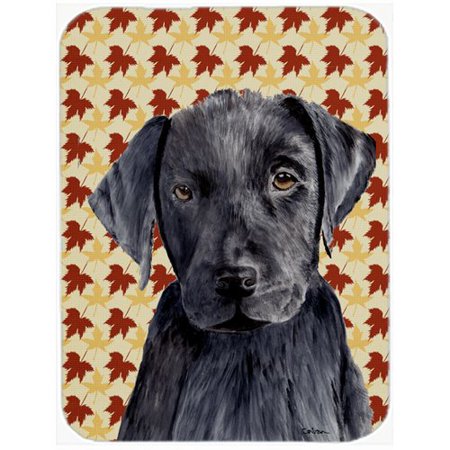 Carolines Treasures SC9204LCB 12 x 15 in. Labrador Black Fall Leaves Portrait Glass Cutting Board, Large