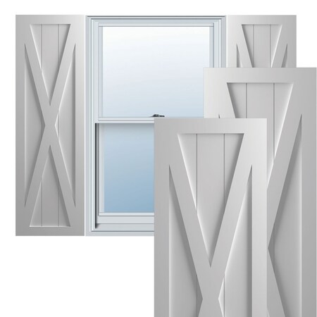 Ekena Millwork TFP001FH18X078PR True Fit PVC Single X-Board Farmhouse Fixed Mount Shutters, (Per Pair-Hardware Not Included), 18"W x 78"H, Primed
