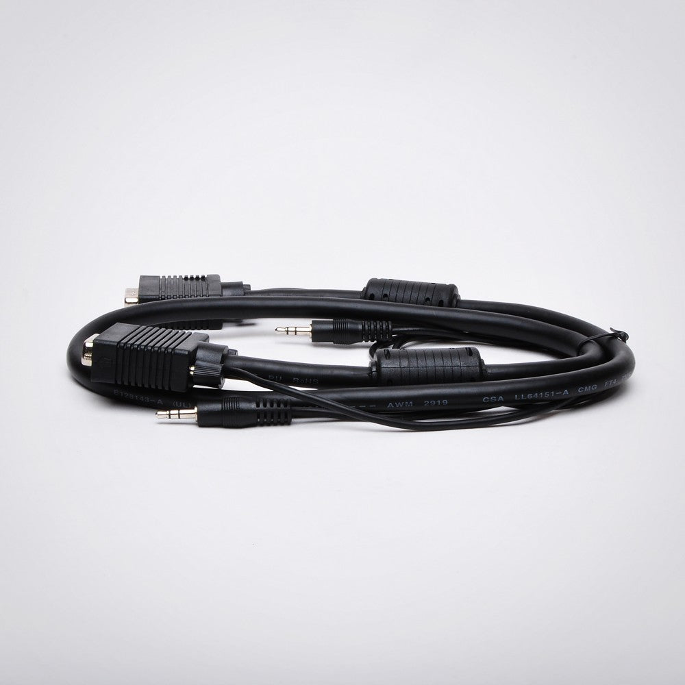 <p>Features:</p> <ul> <li>Ideal for video presentations, projector applications, and classroom environments</li> <li>Drive signals without ghosting or signal distortion</li> <li>Distance from the HD15M connector to the 3.5mm stereo plug is about 12 inches</li> <li>125% foil shielding; 90% tinned copper braid shielding</li> </ul> <p>Specs:</p> <ul> <li>Electrical-distribution-switchers</li> <li>Sixteen-Port SMB CAT5 KVM</li> <li>Double Shielded</li> <li>Transmits Audio</li> <li>3 Foot</li> <li>Black</li> </ul>