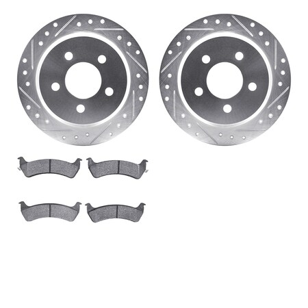 Dynamic Friction Company Rear Brake Rotors-Drilled and Slotted-Silver with 5000 Advanced Brake Pads 7502-42018