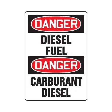 Accuform FBMCHL226VP Plastic French Bilingual Sign,"Danger Diesel Fuel/Danger CARBURANT Diesel", 14" Length x 10" Width x 0.055" Thickness, Red/Black on White