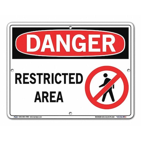 Vestil SI-D-22-B-PS-040 RESTRICTED AREA Danger Sign, Polystyrene, 0.040" Overall Size, 12.5" W x 9.5" H