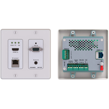 Kramer's <strong>WP-20</strong> is a high-performance, 4K, multi-format, wall-plate switcher and transmitter over extended-reach HDBaseT that works with receivers like the KR-TP-588D or KR-TP-580RXR (sold separately). Offering intelligent Maestro automation, with priority and last-connected switching options, it automatically switches and operates the room according to the selected switching scheme based on active video signal detection.</p><p><b>Perfect for:</b><br />Podium-mounted switcher in lecture halls, training rooms, auditoriums and hospitality applications.<br />Wall-mounted switcher within any AV distribution system.<br />Multimedia and presentation source selection in various corporate applications.</p>