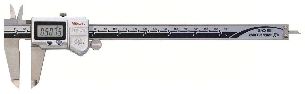 0-8 in/0-200mm, .0005 in/0.01mm, IP67 absolute coolant proof caliper, no output