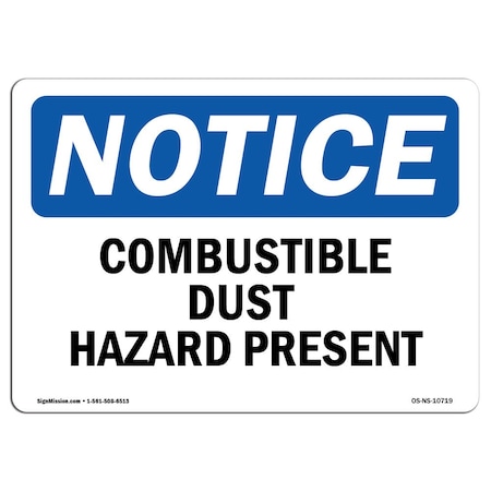 OSHA Notice Sign, Combustible Dust Hazard Present, 18in X 12in Aluminum