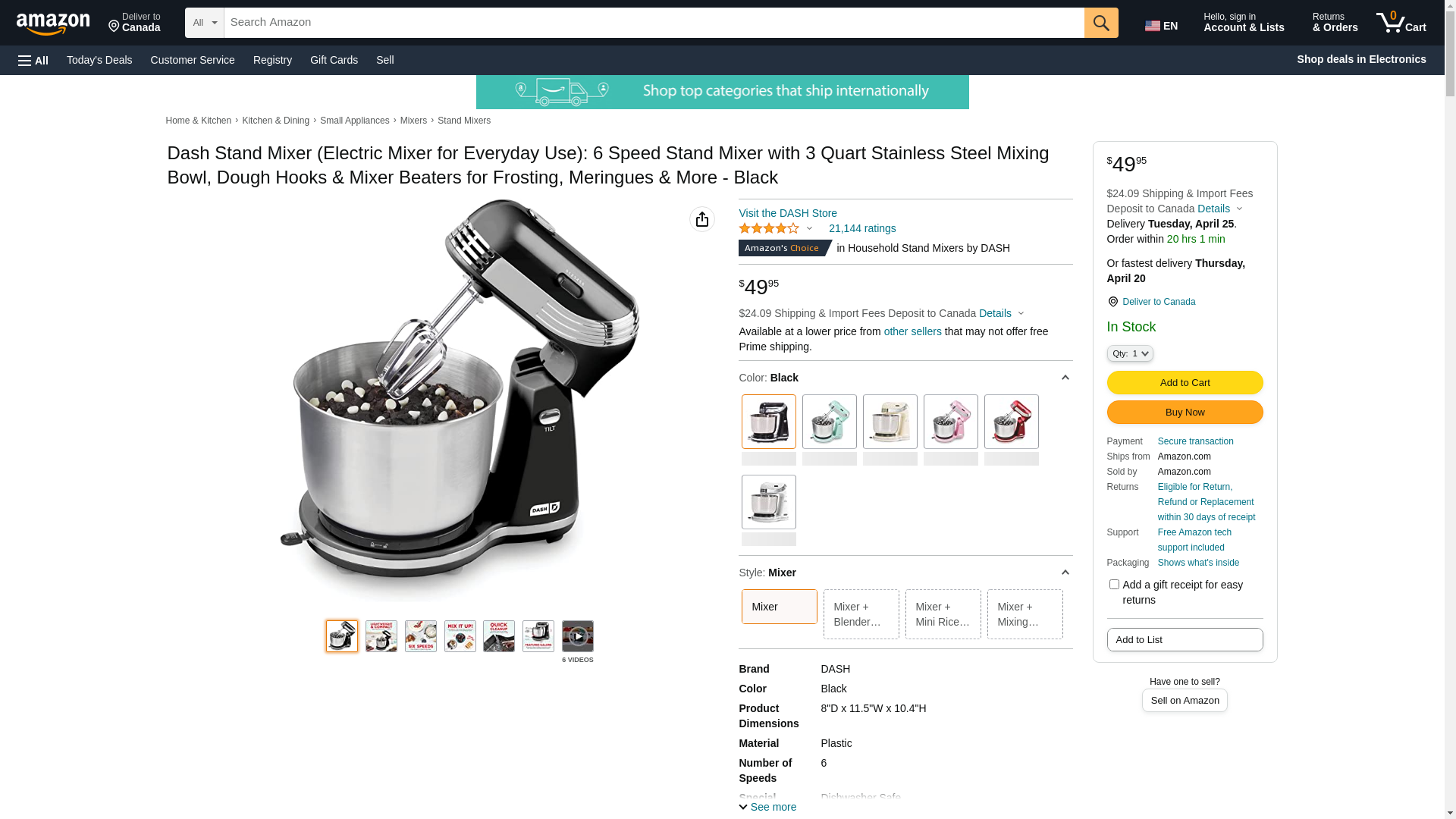 Dash Stand Mixer (Electric Mixer for Everyday Use): 6 Speed Stand Mixer with 3 qt Stainless Steel Mixing Bowl, Dough Hooks & Mixer Beaters for Dressings, Frosting, Meringues & More - Black