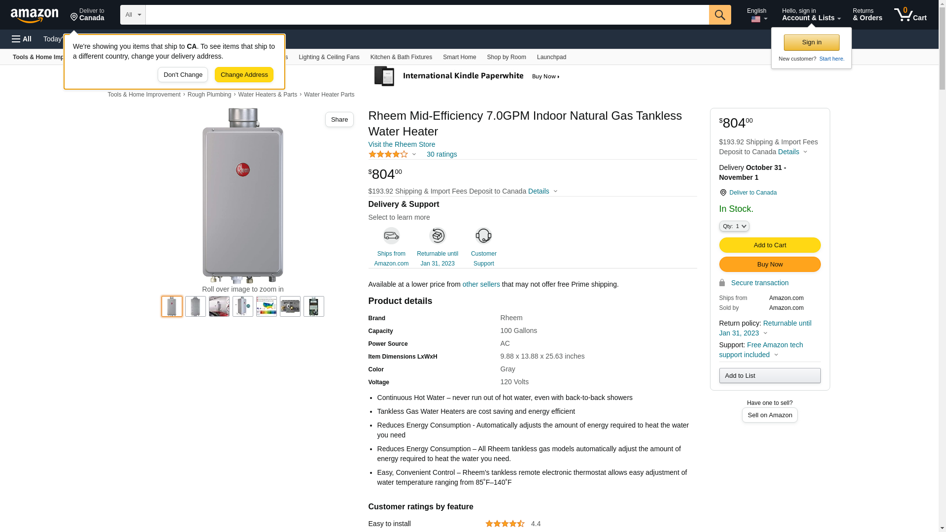 Rheem Mid-Efficiency 7.0GPM Indoor Natural Gas Tankless Water Heater