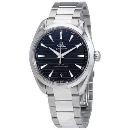 Black dial. Silver-tone stainless steel case with a silver-tone stainless steel band. Automatic movement. 150 meters / 500 feet water resistance. Fixed bezel. Deployment with Push Button Release clasp. Case size 41 mm x 13.2 mm. Omega 220.10.41.21.01.001 Seamaster Aqua Terra Watch.
