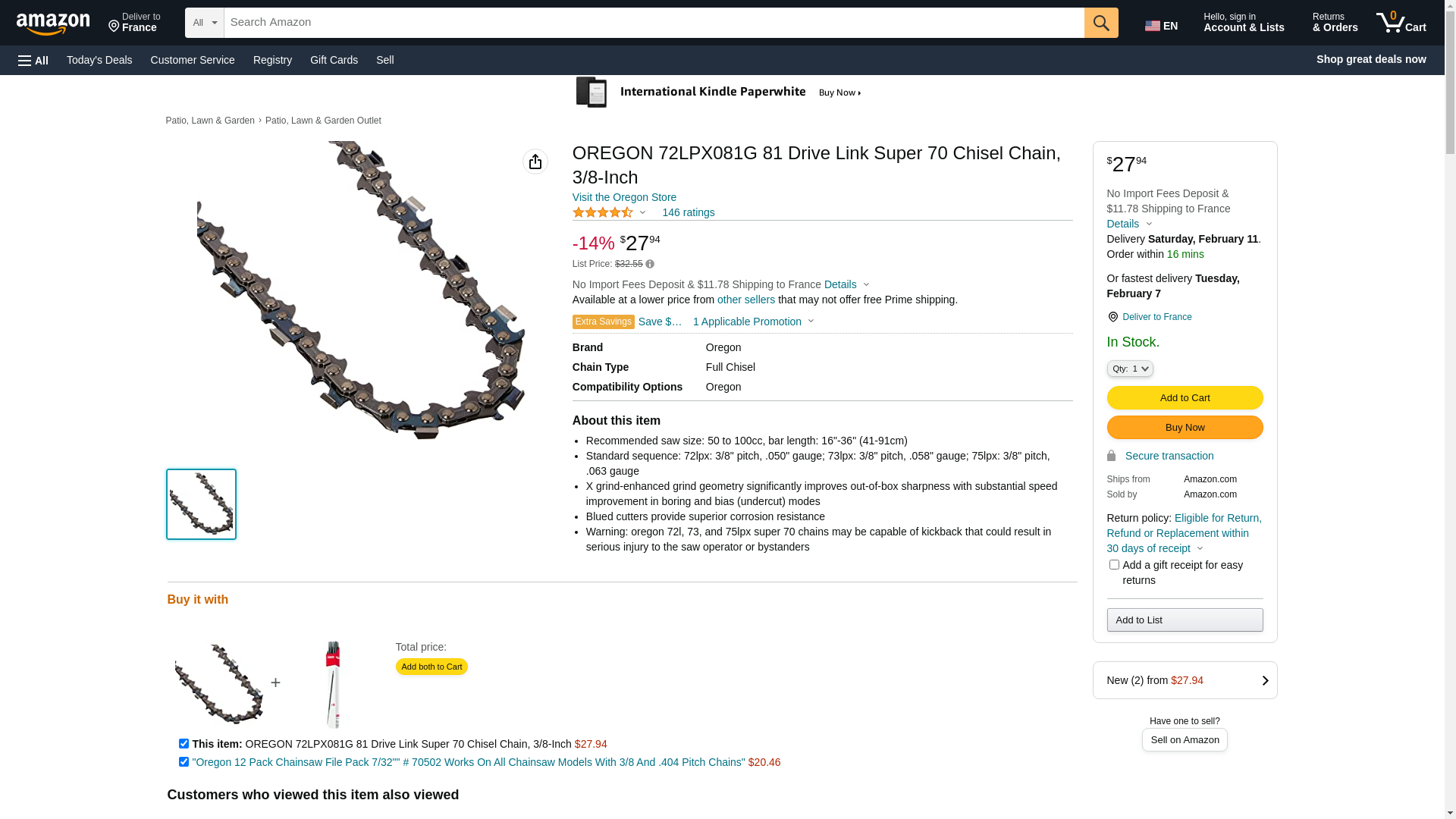 Brand New 10 PK Genuine Oregon 72LPX081G 24" PowerCut Saw Chain 3/8" .050" 81DL... Genuine Oregon Part # 72LPX081G Pitch: 3/8" Gauge: .050" Drivelinks: 81