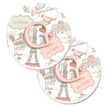 Caroline's Treasures CJ2002-GCARC Letter G Love in Paris Pink Set of 2 Cup Holder Car Coasters, Large, Multicolor